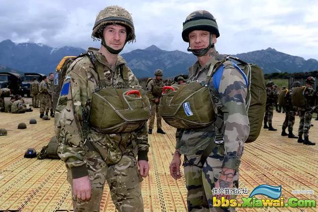 ▲图为英法伞兵在训练间歇合影