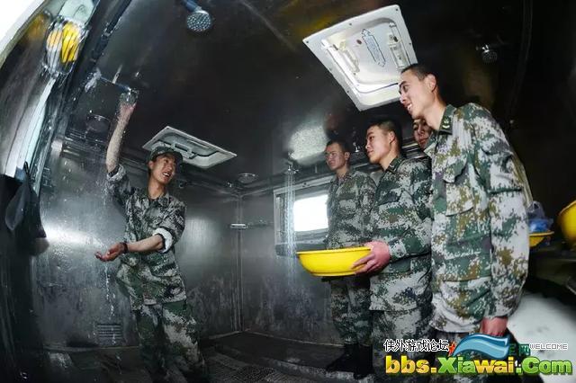 ▲图为解放军野战淋浴车在