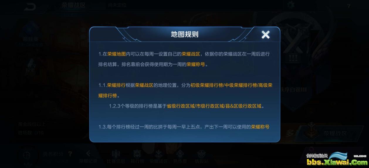 在你大厅依次点击排位赛赛>荣耀记录>荣耀战区,点开右上角的问号按钮,系统会提示该战区的日期在周一。然鹅,系统不可能让你改其他地方,系统会读取你当前位置