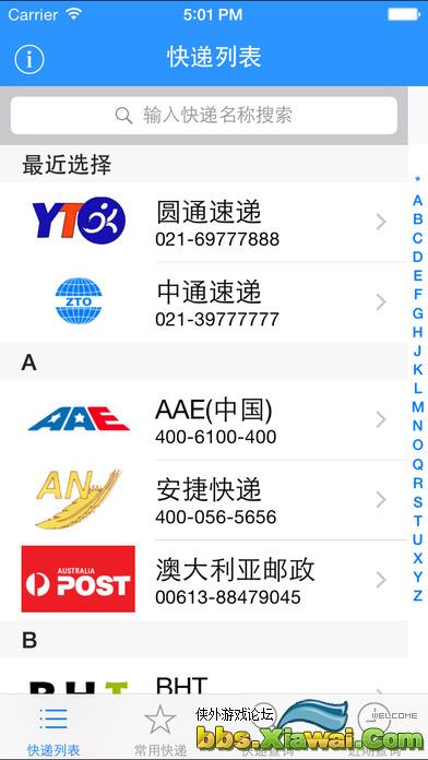 自定义您经常使用的快递公司,点击“☆”收藏常用快递