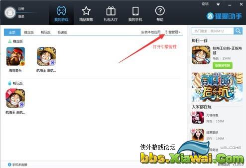 ,在下图的位置打开引擎管理: