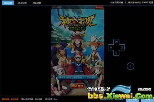 技能键设置:点击屏幕,输入键位,即可模拟手指触摸该位置。(视频中,技能键设置为HJKL)。